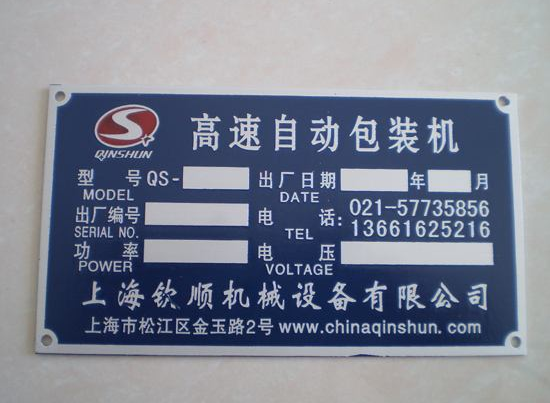 蘇州設備銘牌制作,承接公司銘牌、電機設備銘牌的定制生產(chǎn),可定制金屬銘牌、亞克力銘牌等,做銘牌,就找專(zhuān)業(yè)的五金機械設備銘牌制作廠(chǎng)家!